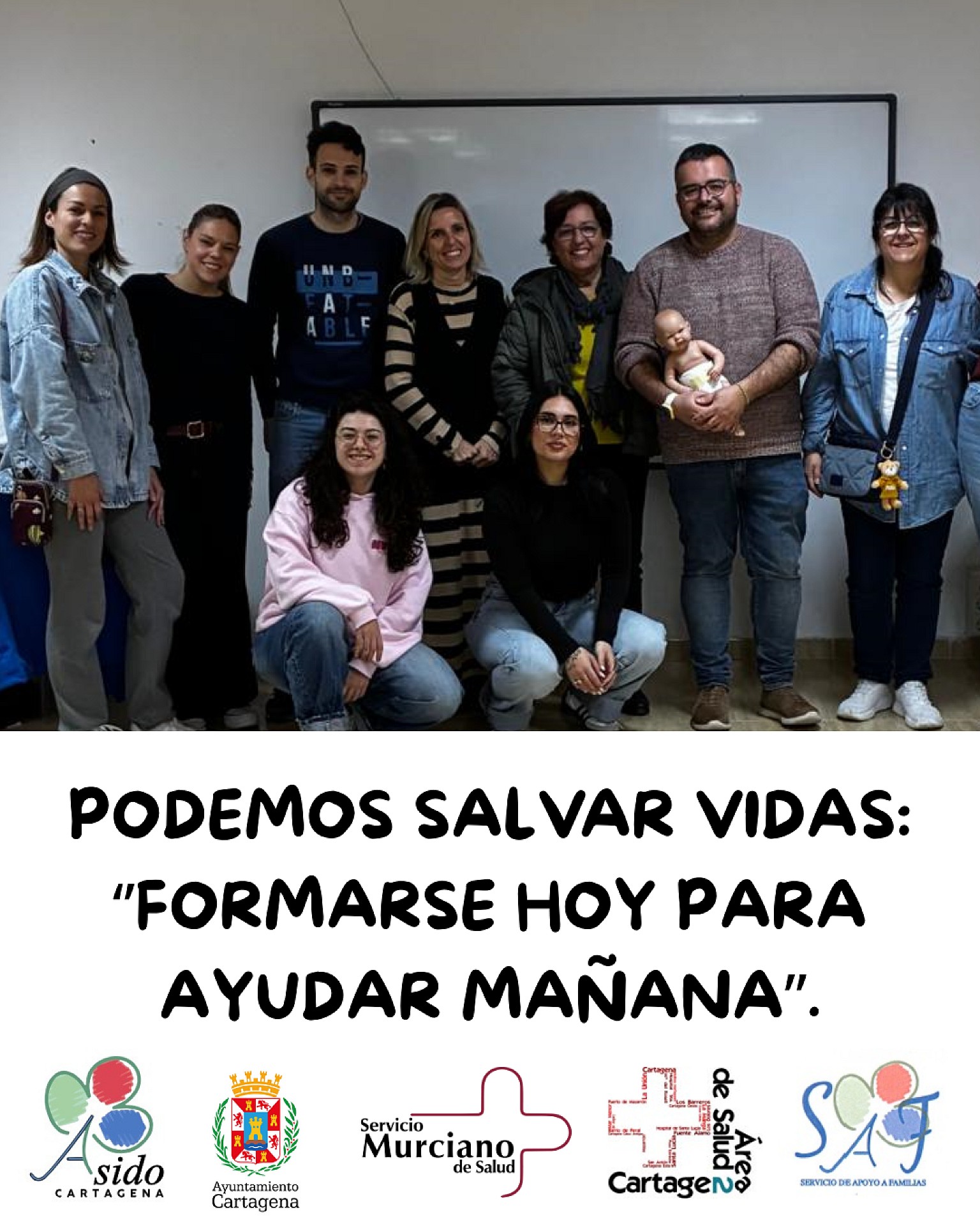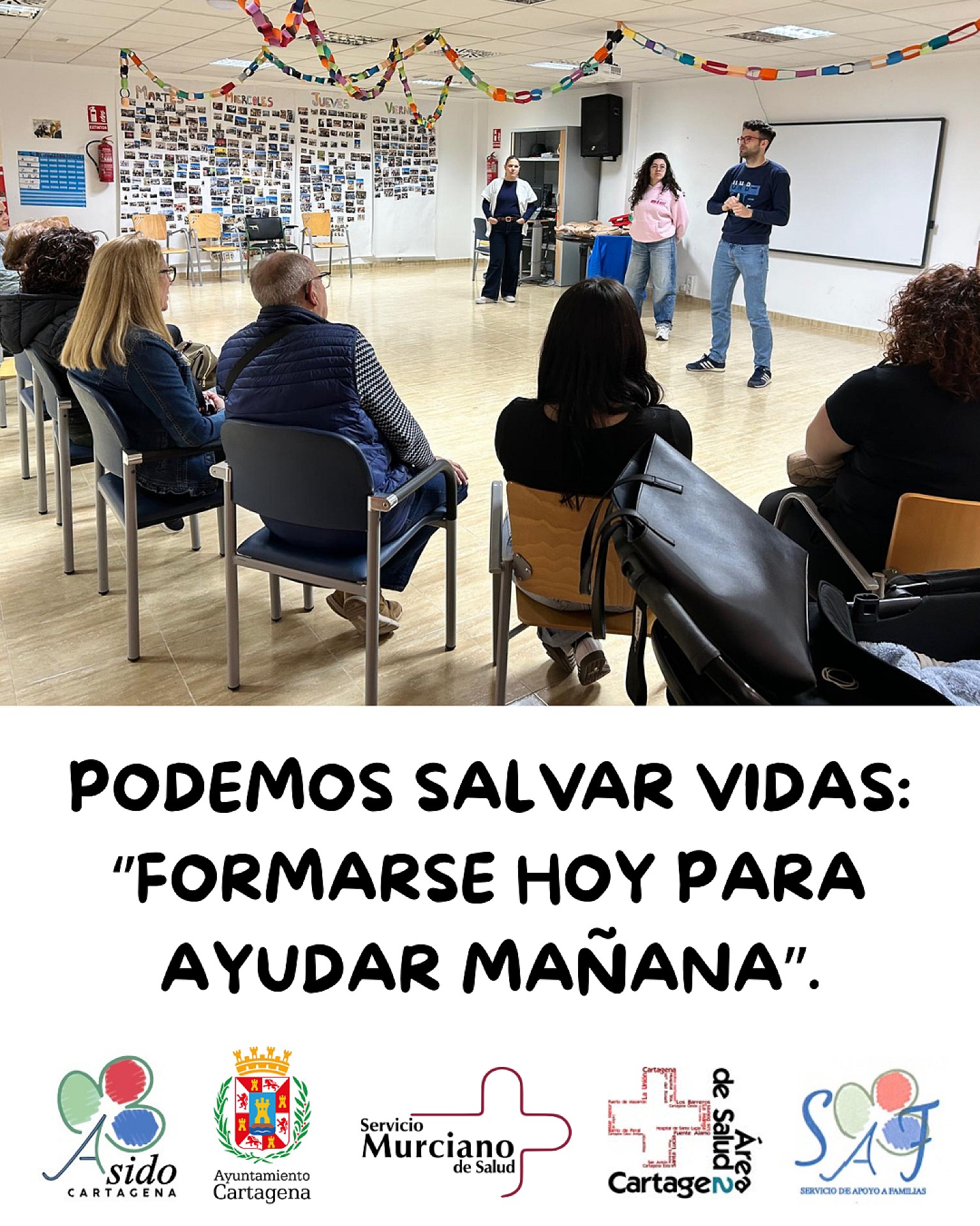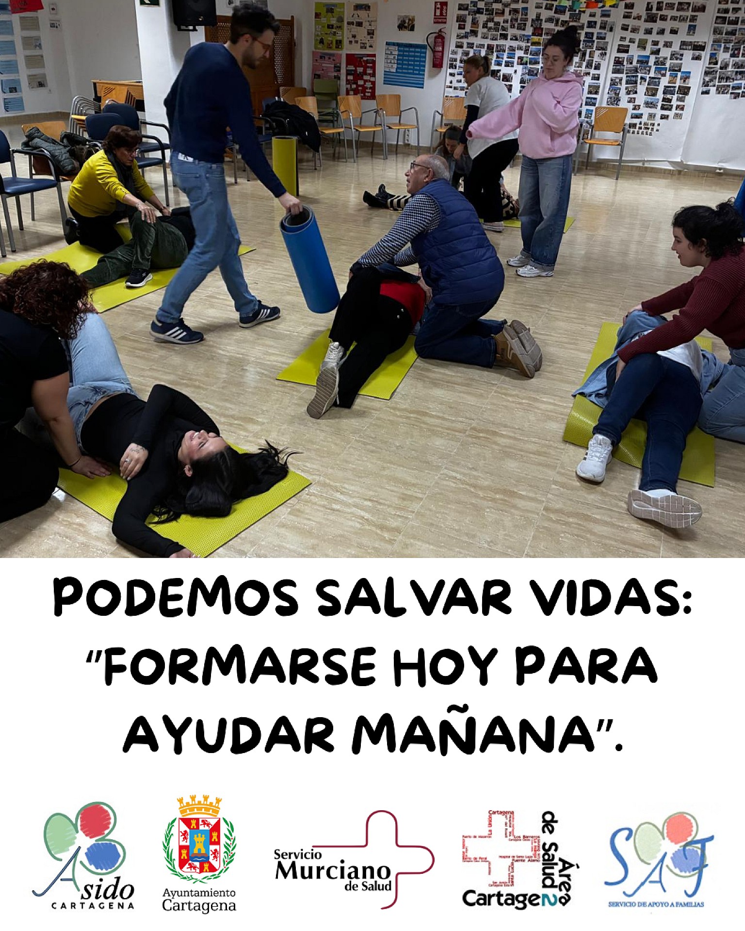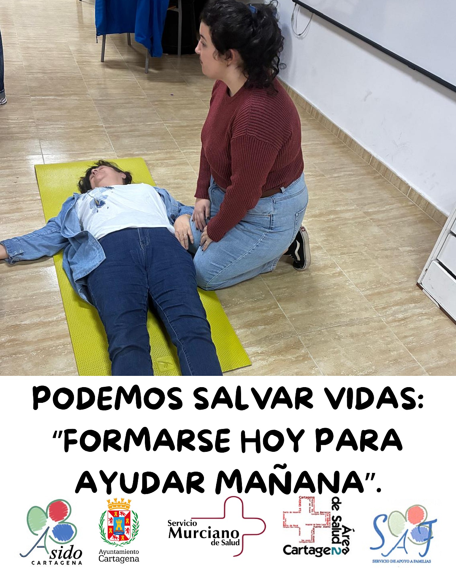 Las familias de Asido Cartagena han recibido, gracias a los profesionales del Servicio Murciano de Salud y a la Coordinación Sociosanitaria de Santa Ana - Miranda, una formación muy necesaria en reanimación cardiopulmonar (RCP) y en la actuación ante situaciones de atragantamientos.